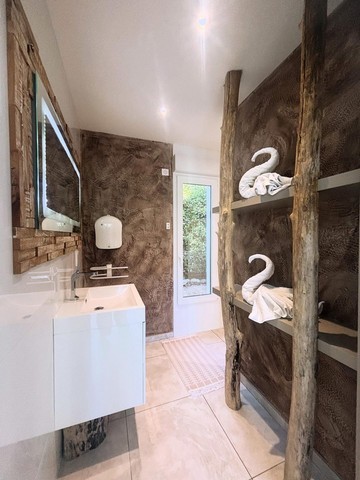 • Séjour Climatisé : La climatisation, située dans la pièce principale, assure une température agréable dans tout le logement, y compris les chambres.