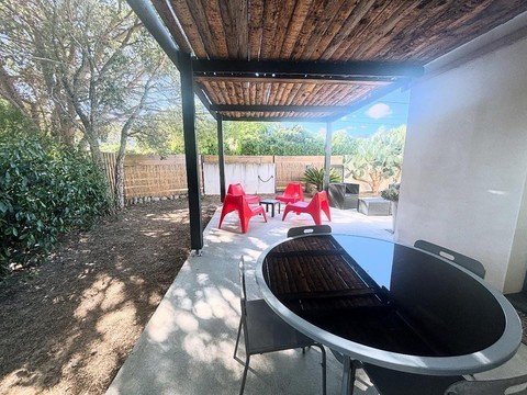 • Coin Repas & Détente : Grande table de jardin et salon de jardin.